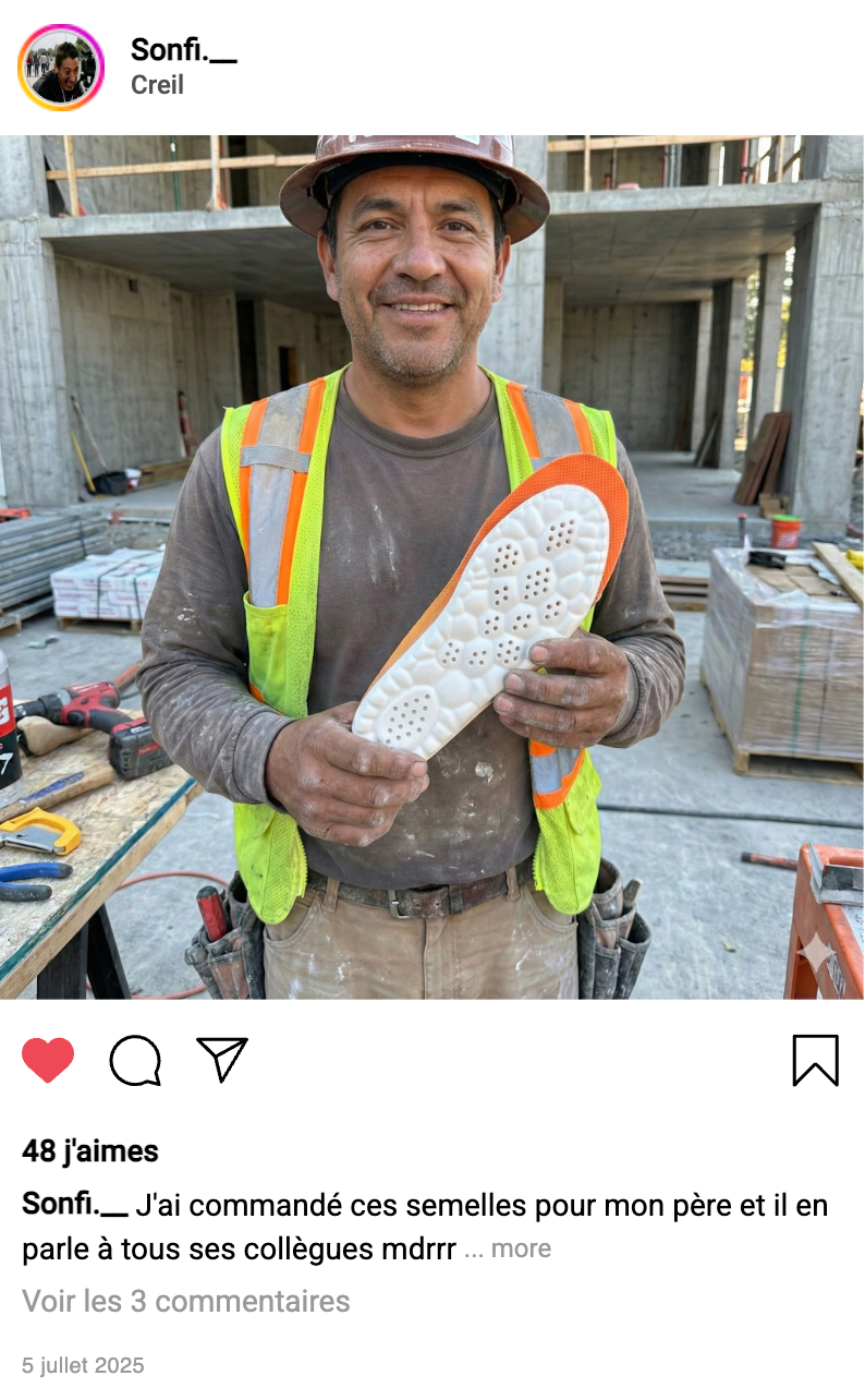 Nos semelles sont conçues pour être universelles. Elles sont facilement découpables à l'aide de ciseaux pour s'adapter précisément à votre pointure et à tous types de chaussures (baskets, bottes, chaussures de ville).